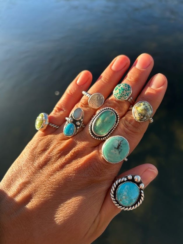 Size 10 Kingman turquoise ring. Handmade, sterling silver.